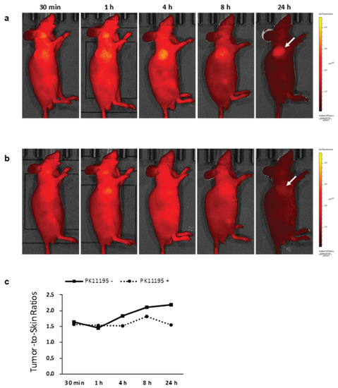 In another study Perrone et al. synthetized, by nucleophilic aliphatic substitution in a single-step radiolabeling procedure, a new fluorine-substituted ligand, named [18F]CB251 (Figure 1), with high affinity and selectivity for the TSPO, which is suitable for the diagnosis of neuroinflammation, neurodegeneration, and tumor progression [17]. Tissue distribution studies in healthy mice confirmed that the radiotracer was highly uptaken by TSPO-enriched tissues and reached a desirable level in the brain. Moreover, they observed a low uptake of radioactivity in the femur that indicated negligible defluorination of the radioligand and reflected the high in vitro stability recorded for [18F]CB251 in human serum. These results highlighted the potential use of [18F]CB251 as a biomarker sufficiently stable for further in vivo PET imaging studies.