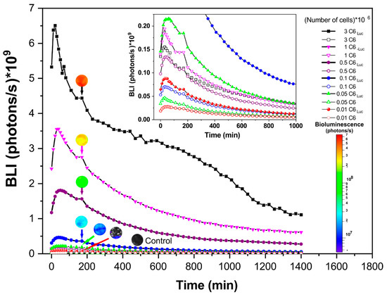 2.7. Kinetics of Bioluminescent Signal in C6Luc Cells