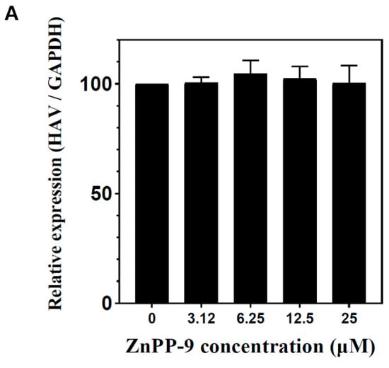 The following are available online at https://www.mdpi.com/article/10.3390/pharmaceutics13081229/s1, Figure S1: Changes in the amount of HAV RNA-dependent RNA polymerase gene. Figure S2: Cytotoxicity assay for FeCl3, CORM-3, and biliverdin.