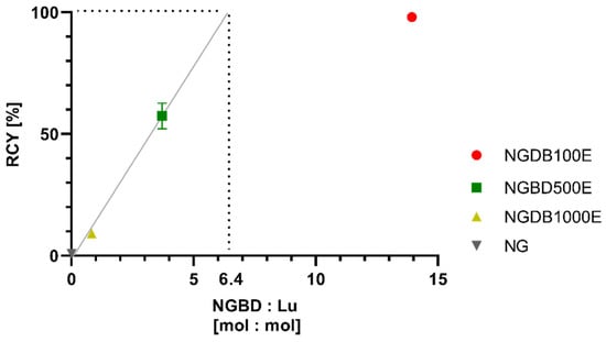 The samples of PAA nanogels coupled with DOTA-bombesin derivative were labeled with [177Lu]LuCl3 (0.2–9.8 GBq). Each of the 1 mg lyophilized NGBD samples was dissolved in 1 mL of water for HPLC (high-performance liquid chromatography). Next, 0.5 mL of NGBD was mixed with 0.2 mL of ascorbic acid sodium salt solution of pH = 4.5–5.0 and 2–100 µL of radionuclide were added. The sample was incubated at 95 ± 5 °C for 15 min.