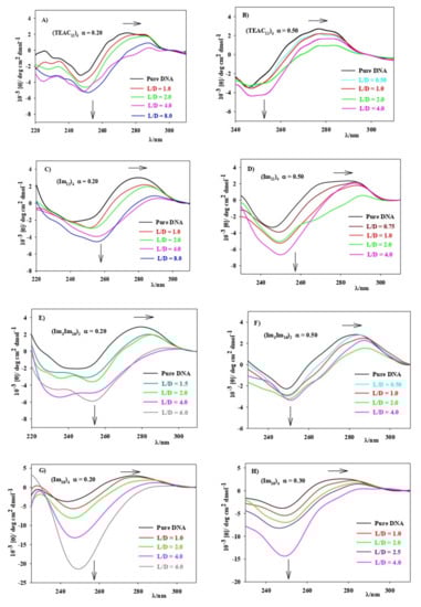 - Marty, R.; N’soukpoe-Kossi, C.N.; Charbonneau, D.; Weinert, C.M.; Kreplack, L.; Tajmir-Riahi, H.-A. Conformational analysis of DNA complexation with cationic lipids. Nucleic Acids Res. 2009, 37, 849–857. [Google Scholar] [CrossRef] [PubMed]
