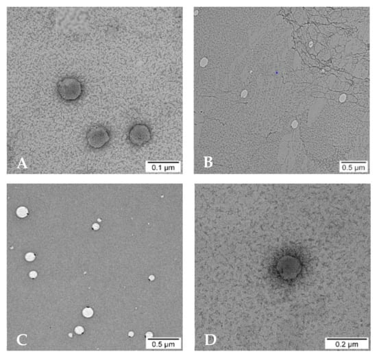 | Liposomes | 147 ± 4 | 157 ± 4 | 130 ± 32 | 140 ± 40 |