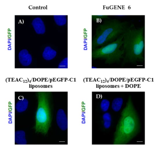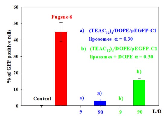 - Bombelli, C.; Faggioli, F.; Luciani, P.; Mancini, G.; Sacco, M.G. Efficient transfection of DNA by liposomes formulated with cationic gemini amphiphiles. J. Med. Chem. 2005, 48, 5378–5382. [Google Scholar] [CrossRef]