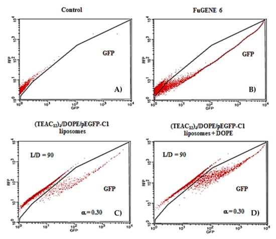 3.3. Transfection Efficiency of CAL/DOPE/pDNA Lipoplexes