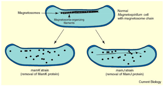 - Stephens, C. Bacterial Cell Biology: Managing Magnetosomes. Curr. Biol. 2006, 16, R363–R365. [Google Scholar] [CrossRef]