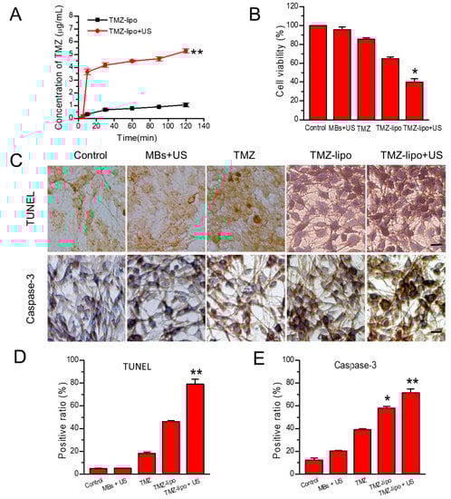 Chicago/Turabian StyleSong, Zhuqing, Xiuxian Huang, Jieqiong Wang, Feiyan Cai, Ping Zhao, and Fei Yan. 2021. "Targeted Delivery of Liposomal Temozolomide Enhanced Anti-Glioblastoma Efficacy through Ultrasound-Mediated Blood–Brain Barrier Opening" Pharmaceutics 13, no. 8: 1270. https://doi.org/10.3390/pharmaceutics13081270