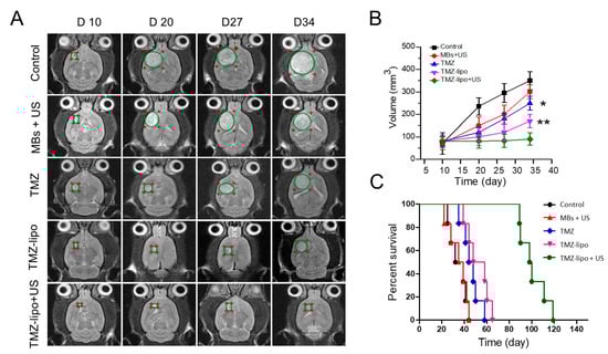 APA StyleSong, Z., Huang, X., Wang, J., Cai, F., Zhao, P., & Yan, F. (2021). Targeted Delivery of Liposomal Temozolomide Enhanced Anti-Glioblastoma Efficacy through Ultrasound-Mediated Blood–Brain Barrier Opening. Pharmaceutics, 13(8), 1270. https://doi.org/10.3390/pharmaceutics13081270