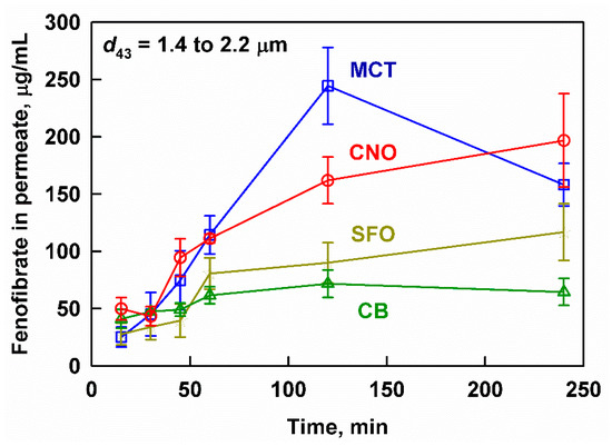 3.2. Effect of Lipid Type on Lipolysis and Fenofibrate Release