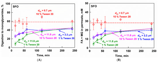 - Li, Y.; McClements, D.J. Inhibition of lipase-catalyzed hydrolysis of emulsified triglyceride oils by low-molecular weight surfactants under simulated gastrointestinal conditions. Eur. J. Pharm. Biopharm. 2011, 79, 423–431. [Google Scholar] [CrossRef]