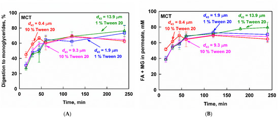 - Vinarov, Z.; Tcholakova, S.; Damyanova, B.; Atanasov, Y.; Denkov, N.D.; Stoyanov, S.D.; Pelan, E.; Lips, A. Effects of Emulsifier Charge and Concentration on Pancreatic Lipolysis: 2. Interplay of Emulsifiers and Biles. Langmuir 2012, 28, 12140–12150. [Google Scholar] [CrossRef] [PubMed]