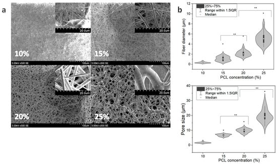 | PCL concentration, % w/v | 10 | 15 | 20 | 25 |