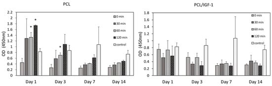 - Clark, A.; Milbrandt, T.A.; Hilt, J.Z.; Puleo, D.A. Retention of insulin-like growth factor I bioactivity during the fabrication of sintered polymeric scaffolds. Biomed. Mater. 2014, 9, 025015. [Google Scholar] [CrossRef]