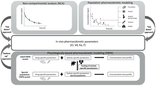 - Tsamandouras, N.; Rostami-Hodjegan, A.; Aarons, L. Combining the ‘bottom up’ and ‘top down’ approaches in pharmacokinetic modelling: Fitting PBPK models to observed clinical data: Parameter estimation in PBPK models. Br. J. Clin. Pharmacol. 2015, 79, 48–55. [Google Scholar] [CrossRef]