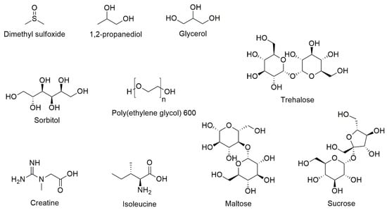 - Pi, C.H.; Yu, G.; Petersen, A.; Hubel, A. Characterizing the “sweet spot” for the preservation of a T-cell line using osmolytes. Sci. Rep. 2018, 8, 16223. [Google Scholar] [CrossRef]
