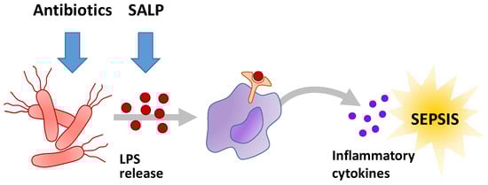 Lysis of bacteria leads to increased release of LPS followed by an increased activation of the immune system. This eventually leads to sepsis, a detrimental host response to infection. Over-activation of the immune system can lead to coagulation disorders and organ dysfunction. Currently, cardiorespiratory resuscitation and early intravenous antibiotic therapy represent current standard therapy of sepsis [].