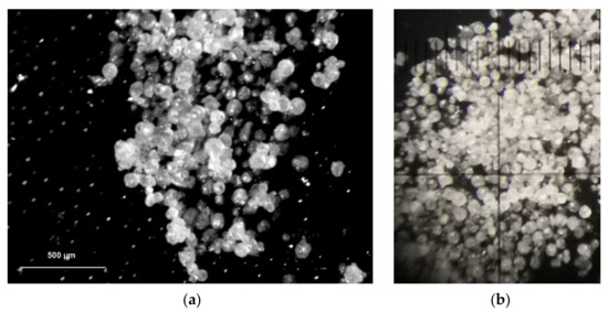 As observable, the collected photographs confirmed the presence of spherical microparticles, approximately in the range of 100–200 µm. Moreover, the absence of irregularly shaped particles or crystalline material between the SLMs is evident, suggesting that no crystallization phenomena of MCZ occurred during the cooling step and the formation of the SLMs by the starting hot emulsion. To evaluate the dimensional distribution of the microspheres, two methods were used: sieves and light scattering analyses. The first provided information on the size distribution of the coarse particles and simultaneously enables the separation of the particles according to classes, highlighting the potential presence of non-spherical aggregates of lipid material (