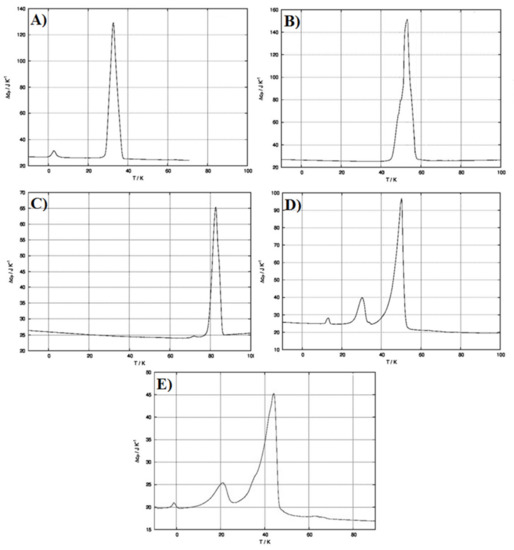 Figure 6A–C reports the DSC thermograms of every single component of the SLMs by itself. As observable, each raw material is characterized by the presence of an endothermic peak related to its previously reported melting point.