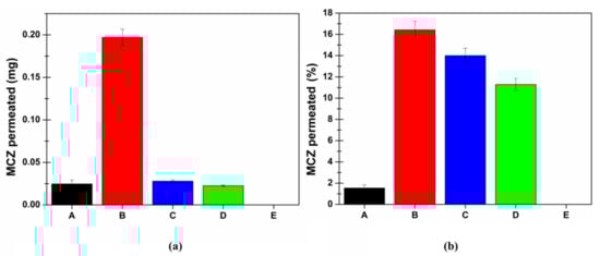 Figure 10 shows the cumulative amount of MCZ permeated after 6 h of experiment both in terms of quantity (mg) and percent of the administered dose.