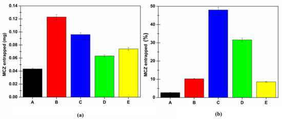 The obtained optimized MCZ-loaded SLMs were subjected to further characterization in order to evaluate the efficacy of drug encapsulation, as well as their homogeneity in terms of dimension and shape.