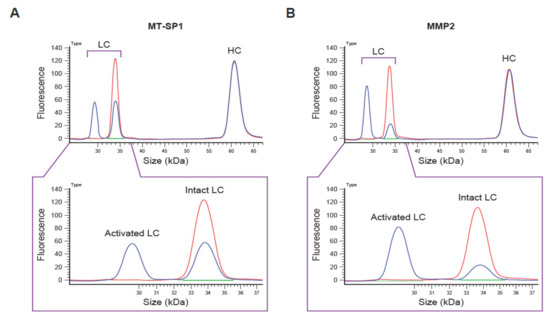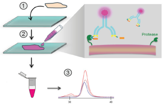 - Vasiljeva, O.; Menendez, E.; Nguyen, M.; Craik, C.S.; Kavanaugh, W.M. Monitoring protease activity in biological tissues using antibody prodrugs as sensing probes. Sci. Rep. 2020, 10, 5894. [Google Scholar] [CrossRef] [PubMed] [Green Version]