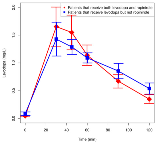 - Taylor, A.C.; Beerahee, A.; Citerone, D.R.; Cyronak, M.J.; Leigh, T.J.; Fitzpatrick, K.L.; Lopez-Gil, A.; Vakil, S.D.; Burns, E.; Lennox, G. Lack of pharmacokinetic interaction at steady state between ropinirole and L-dopa in patients with Parkinson’s disease. Pharmacotherapy 1999, 19, 150–156. [Google Scholar] [CrossRef]