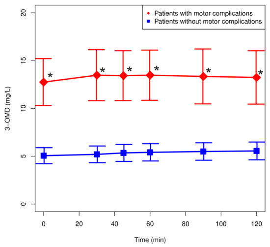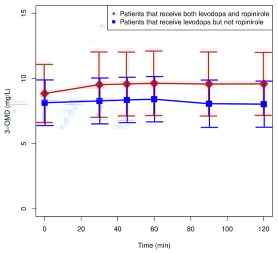 3.2. Plasma Concentration of Levodopa and 3-OMD