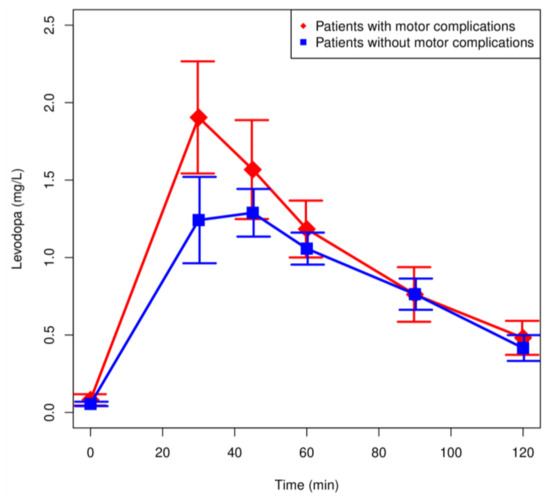 - Simon, N.; Viallet, F.; Boulamery, A.; Eusebio, A.; Gayraund, D.; Azulay, J.-P. A combine pharmacokinetic/pharmacodynamic model of levodopa motor response and dyskinesias in Parkinson’s disease patients. Eur. J. Clin. Pharmacol. 2016, 72, 423–430. [Google Scholar] [CrossRef] [PubMed]