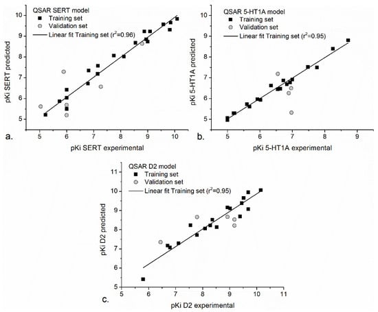 | Compounds | pKiSERTexp/ pKiSERTpredicted | pKi 5-HT1Aexp/ pKi 5-HT1Apredicted | pKi D2exp/ pKi D2predicted |
