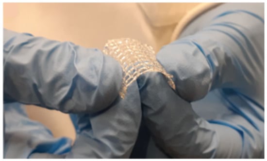3D-printed rifampicin-loaded scaffold showing great mechanical flexibility and integrity upon bending. Images reproduced with permission from [65].