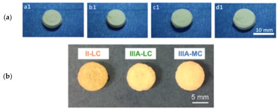 Pictures of ramipril printlets. (a) VA64, (b) VA64:12PF (3:2) and (c) VA64:PF12 (1:1). Image reproduced with permission from [78]. Copyright Elsevier, 2018.