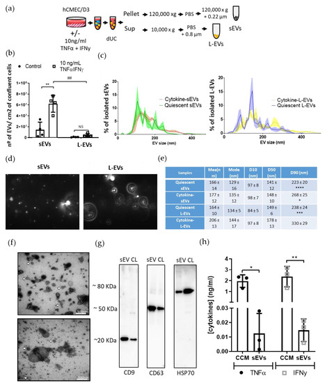 3.1. hCMEC/D3 Cells Secrete More Small EVs than Large EVs after Treatment with TNFα and IFNγ