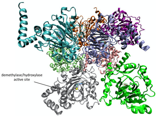 Fourth, Jumonji domain-containing protein 6 (Jmjd6) is involved in histone and non-histone posttranslational modifications, and uses the same active site to catalyze at least two different reactions.