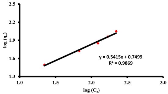 | log qe = log KF + (1/n) log Ce | (5) | |