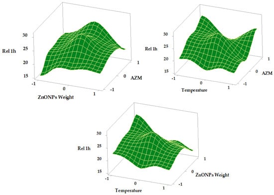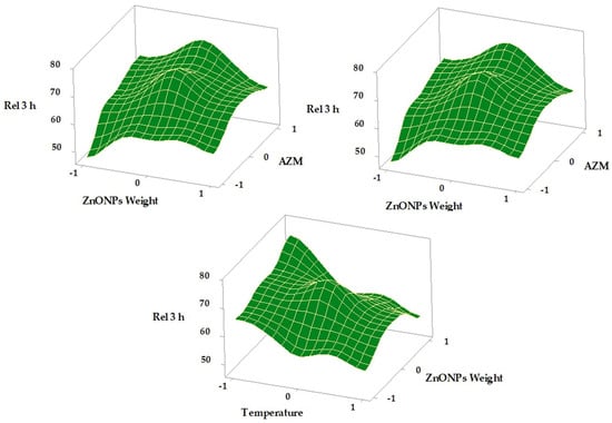 | X1 AZMConc. | X2 ZnONP Weight | X3 Temperature | Y1 LE % | Y2 Rel 1 h | Y3 Rel 3 h | |