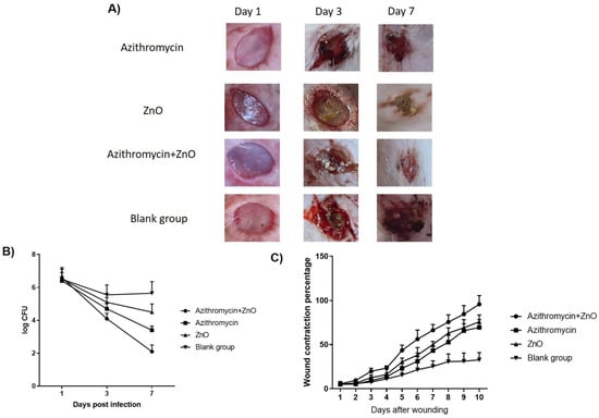 Saddik, M.S.; Elsayed, M.M.A.; El-Mokhtar, M.A.; Sedky, H.; Abdel-Aleem, J.A.; Abu-Dief, A.M.; Al-Hakkani, M.F.; Hussein, H.L.; Al-Shelkamy, S.A.; Meligy, F.Y.; et al. Tailoring of Novel Azithromycin-Loaded Zinc Oxide Nanoparticles for Wound Healing. Pharmaceutics 2022, 14, 111. https://doi.org/10.3390/pharmaceutics14010111