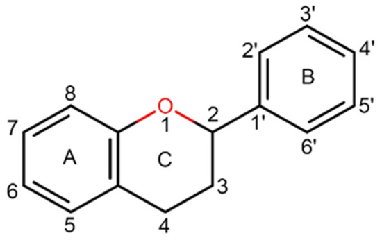 According to structural arrangements of flavonoids, they are divided into seven classes: flavans, isoflavones, flavonols, flavones, flavanones and chalcones [88]. Structural variations that give rise to the diversity of classes result from changes in the hydroxylation pattern and oxidation state of the heterocyclic chain of the pyran [88,89].