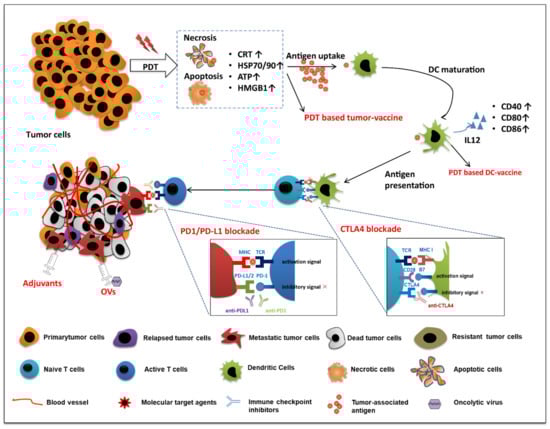 - Gollnick, S.O.; Vaughan, L.; Henderson, B.W. Generation of effective antitumor vaccines using photodynamic therapy. Cancer Res. 2002, 62, 1604–1608. [Google Scholar] [PubMed]