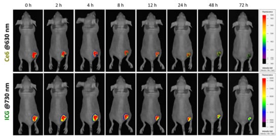 2.15. In Vivo Imaging of ICG/PTX/BSA-Ce6-NPs
