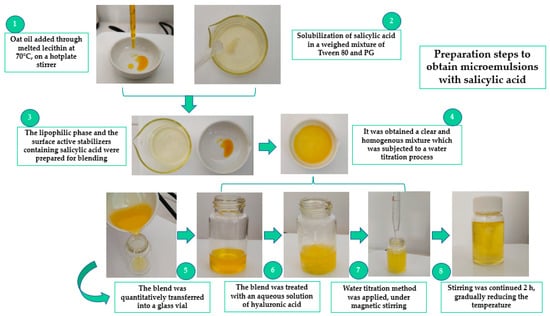 Critical steps performed in the preparation process of microemulsions with salicylic acid.