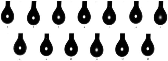 The depiction of superficial properties of microemulsions was based on the measurement of free superficial energy and contact angle, using CAM-101 Goniometer, equipped with a Hamilton syringe, a C209-30 needle, and a digital camera (KSV Instruments Ltd., Espoo, Finland), as reported in [89,90]. Drops of each sample (μL) were applied on microscope slides, captured with a digital camera, and measured over a period of 64 ms by an automated curve-fitting program. Young equation (Equation (3)) was fitted with two models of analysis: the pendant drop and contact angle models [85]: