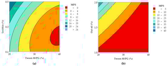 The selection of the maximum level of Tween 80/PG of 40%, associated with lecithin 0.1%, 0.3%, or 0.5% was favorable to assure a complete dispersion of the oil phase at 1%, 1.5%, or 2%, resulting in clear systems.