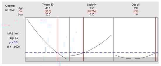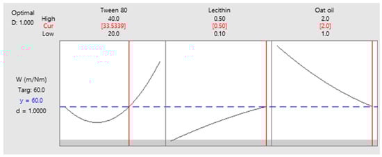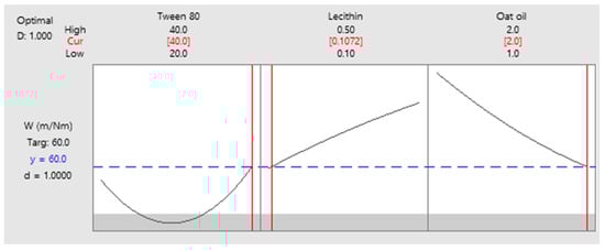 where represents Tween 80 fraction, —lecithin fraction, —propylene glycol fraction, and + + = 10, by reporting to the total mass of the three solubilizers selected in each formulation.