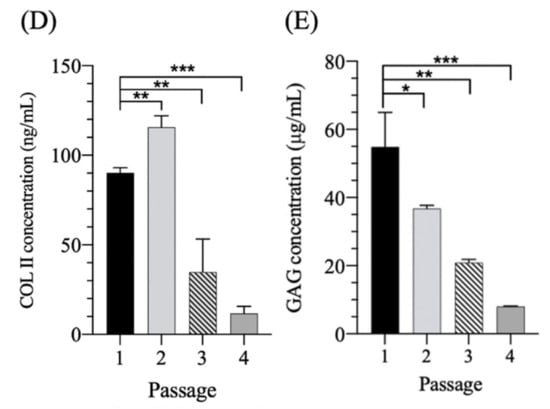 To date, many cell-based therapies have been developed to treat cartilage damage or OA, including autologous chondrocyte implantation (ACI), with cells kept in place either by using a periosteal flap or seeding cells into a cell sheet matrix to postpone or avoid knee replacement surgery at the end-stage of cartilage degeneration [,]. For the ACI technique, the chondrocytes expanded ex vivo lose their phenotype and the ability to synthesize COL II and aggrecan. This is due to the long expansion time and multiple passages in monolayer cultures needed to obtain workable amounts of chondrocytes in the in vitro environment. As dedifferentiation progresses, the synthesis of ECM molecules, such as COL II and glycosaminoglycans (GAGs), is lost, whereas chondrocytes that produce different extracellular proteins (e.g., collagen types I and X (COL I and COL X)) incorporate into the matrix, providing inferior mechanical properties [,]. Therefore, although ACI yields impressive clinical results in repairing damaged cartilage, a more efficient method, particularly one that prevents chondrocyte dedifferentiation, is clearly required.