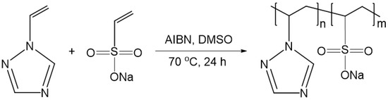 Copolymerization of 1-vinyl-1,2,4-triazole with vinylsulfonic acid sodium salt was carried out in DMSO solution in the presence of an initiator (AIBN) at 70 °C for 24 h, molar ratio of the starting monomers being 50:50 (Figure 1).