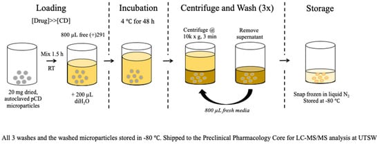 Loading protocol schematic for creating SW033291-loaded β-CD MPs. Prolonging loading to 72 h helps ensure the complexation of SW033291 within the cyclodextrin hydrophobic ‘pocket’.