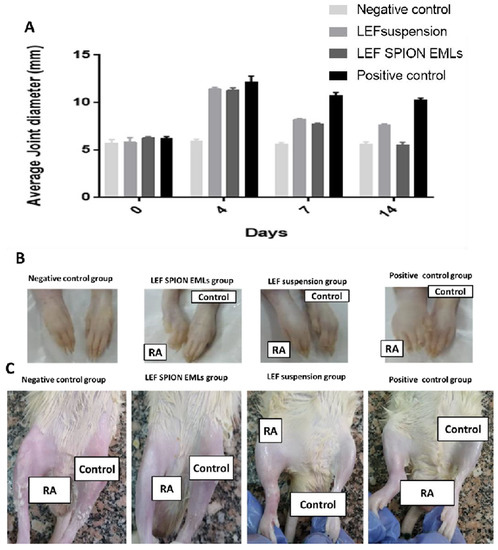 Abbas, H.; Gad, H.A.; El Sayed, N.S.; Rashed, L.A.; Khattab, M.A.; Noor, A.O.; Zewail, M. Development and Evaluation of Novel Leflunomide SPION Bioemulsomes for the Intra-Articular Treatment of Arthritis. Pharmaceutics 2022, 14, 2005. https://doi.org/10.3390/pharmaceutics14102005