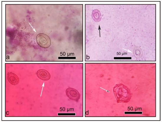 - Levecke, B.; Behnke, J.M.; Ajjampur, S.S.; Albonico, M.; Ame, S.M.; Charlier, J.; Geiger, S.M.; Hoa, N.T.; Kamwa Ngassam, R.I.; Kotze, A.C.; et al. A comparison of the sensitivity and fecal egg counts of the McMaster egg counting and Kato-Katz thick smear methods for soil-transmitted helminths. PLoS Negl. Trop. Dis. 2011, 5, e1201. [Google Scholar] [CrossRef]