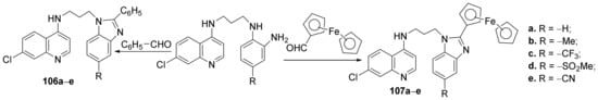 - Baartzes, N.; Stringer, T.; Seldon, R.; Warner, D.F.; Taylor, D.; Wittlin, S.; Chibale, K.; Smith, G.S. Bioisosteric ferrocenyl aminoquinoline-benzimidazole hybrids: Antimicrobial evaluation and mechanistic insights. Eur. J. Med. Chem. 2019, 180, 121–133. [Google Scholar] [CrossRef] [PubMed]