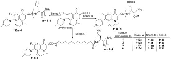 - Berry, L.; Domalaon, R.; Brizuela, M.; Zhanel, G.G.; Schweizer, F. Polybasic peptide-levofloxacin conjugates potentiate fluoroquinolones and other classes of antibiotics against multidrug-resistant Gram-negative bacteria. MedChemComm 2019, 10, 517–527. [Google Scholar] [CrossRef]