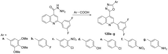 - Tahaab, M.; Ismailab, N.H.; Alic, M.; Rashidc, U.; Imranab, S.; Uddind, N.; Khane, K.M. Molecular hybridization conceded exceptionally potent quinolinyl-oxadiazole hybrids through phenyl linked thiosemicarbazide antileishmanial scaffolds: In silico validation and SAR studies. Bioorg. Chem. 2017, 71, 192–200. [Google Scholar]